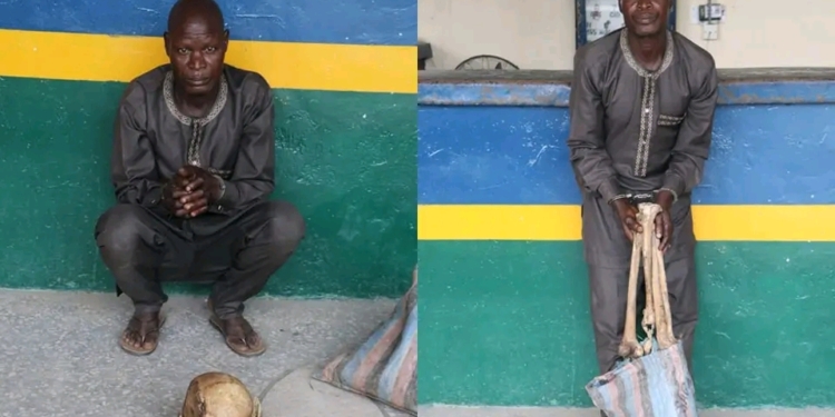 A man identified as Nuhu Ezra has been arrested with a human skull and bones in a community in Nigeria’s Federal Capital Territory.